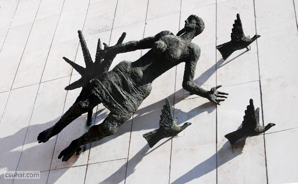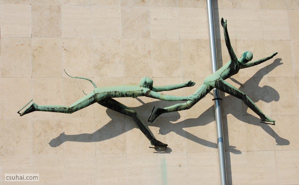 Az is jól látható, hogy falszoborsága ellenére a Korcsolyázók teljes értékű szoborként emelkedik ki a fal síkjából,