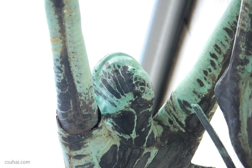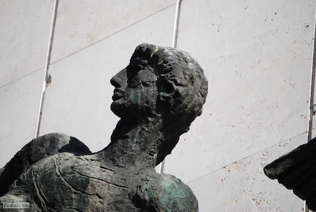 de azért a szobor alá nézve láthatóan megvan az a harmadik dimenzió; legfeljebb a dolgok természetéből adódóan nem körüljárható, hátulról sosem szemügyre vehető köztéri szobor ez.