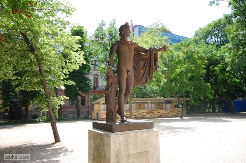 hogy kénytelen vagyok rögtön idetenni egy igazi klasszikus figurális vasszobrot is, a Vatikáni Múzeumból közismert márvány Belvederei Apolló a budapesti Múzeumkertben álló, a bejegyzés írásának pillanatában a kert felújítása miatt ugyancsak nem látható vas másolatát.