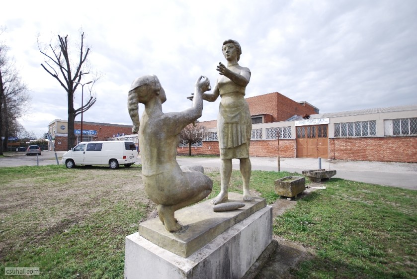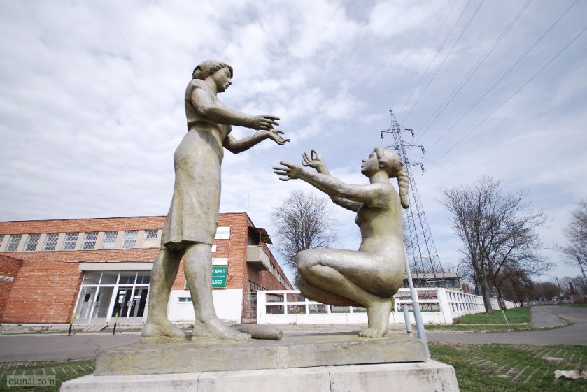 az 1958-ban felállított Fonónőket, amelynek a jobb szélen látható, guggoló nőalakja
