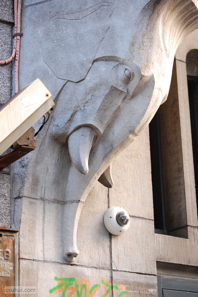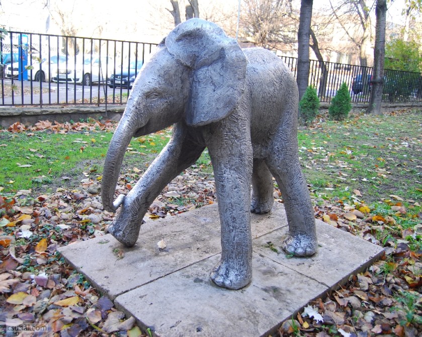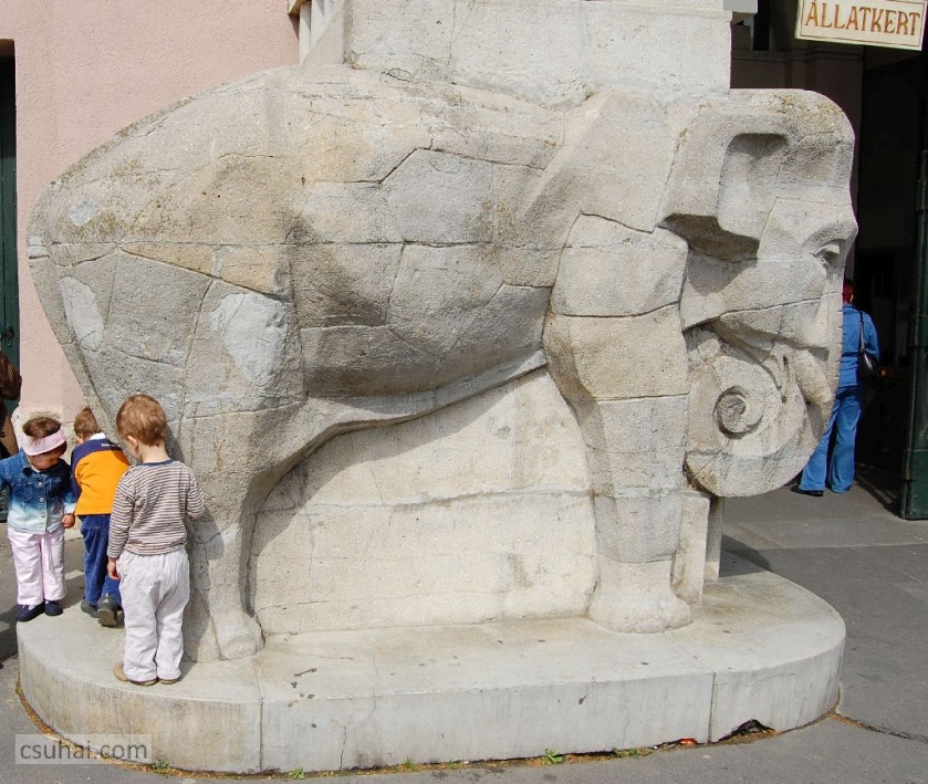 Olyan munkába fogott elefánt, mint amilyen a római lesz mindjárt, Budapesten ritkaság, ezek közül tulajdonképpen csak Maugsch Gyula az Állatkert bejáratát díszítő szobrait tudom bemutatni (a kétszer két egymással szemben állóból egyet), és hát díszítés és munkavégzés arányát itt sem igazán merném definiálni.