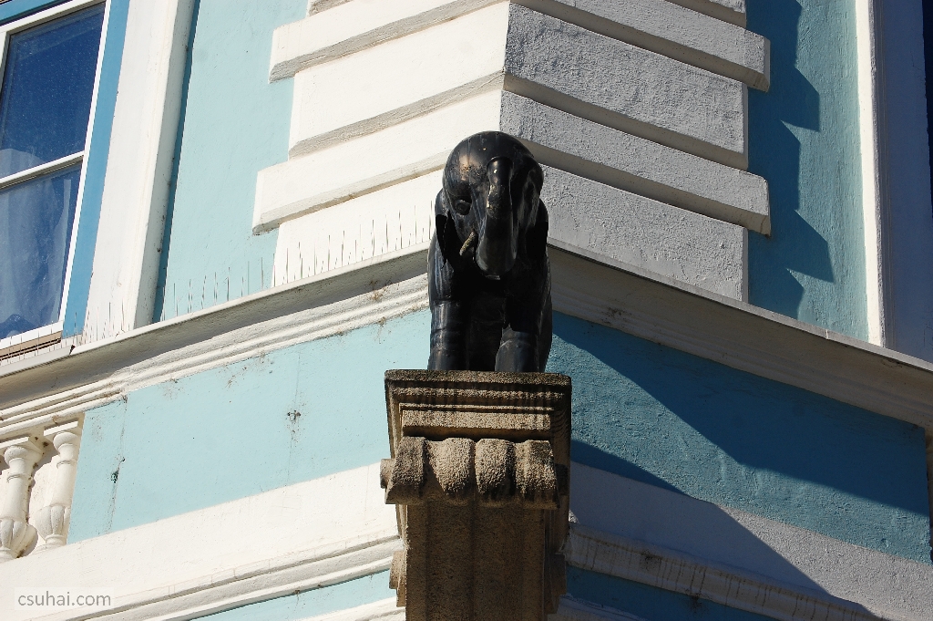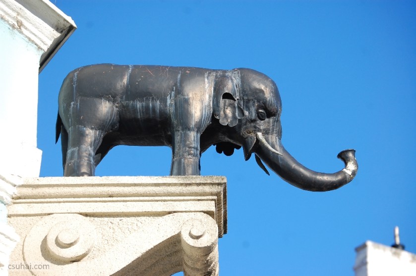 Annak az állatnak hatalmas tömegével, térdelő összehúzódzkodásával ráadásul egy zsúfolt földrész megszámlálhatatlanul sok bajos dolgát kellett egyetlen pillanatban megjelenítenie. (És amikor készült, még Anglia volt a világ rendőre; ahogy fokozatosan kiszorult ebből a szerepéből, a dolgok még jobban elbonyolódtak.) Ezt a zárójeles megjegyzést nem, de ezen kívül a gigantikus Albert-emlékműről és benne az elefántról mindent elmondtam abban a gigantikus posztban (megnyugtató, hogy az embernek élete vége felé a sok száz közül végül mégis marad egy-két olyan szövege, amiről a legvégén nem érzi majd úgy, gyorsan át kell még írnia; Az aranyból faragott királyfiról nem érzem úgy). De tény, hogy a római elefánt más tekintetekben sem ért felkészületlenül, az évek során szorgalmasan gyűjtögettem a magyarországi elefántszobrokat.