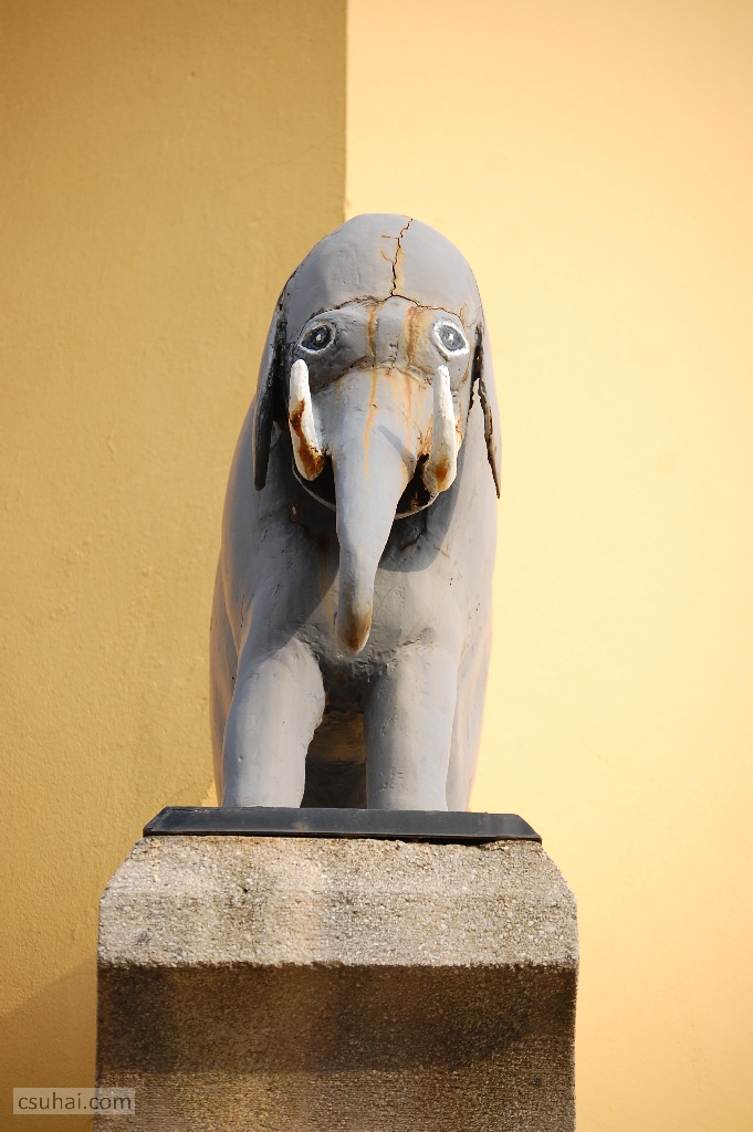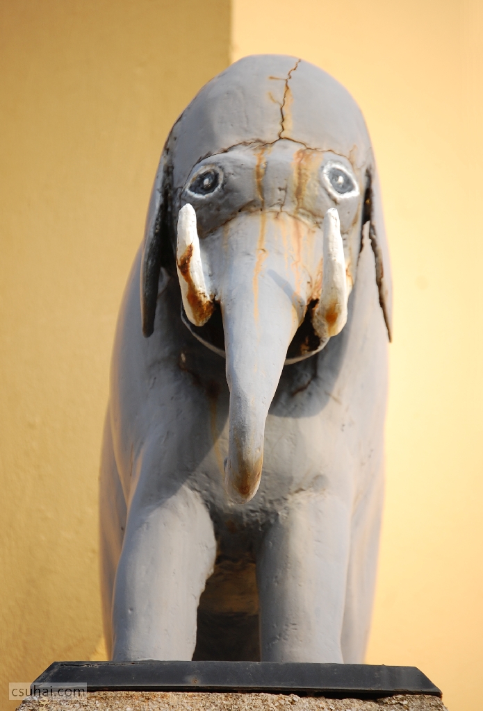 a lépcsősen kialakított talapzaton ott áll az elefánt,