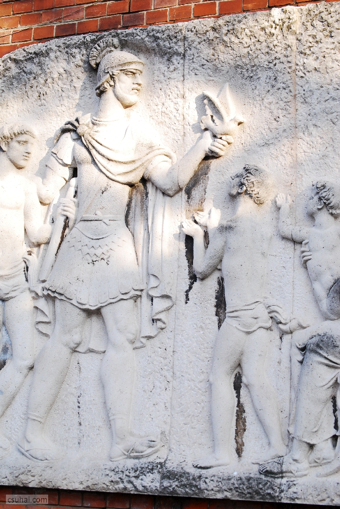 Madarassy Walter A katona hazatér családjához című, a téglafalas általános iskola Vihar utcai bejárata mellett elhelyezett domborműve (noha a szerzői mesterjegy és évszám szerint 1961-es műről van szó) azonban nem különösebben nyert meg magának. Nyilván Aquincum közelsége inspirálta és indokolta a domborművet,