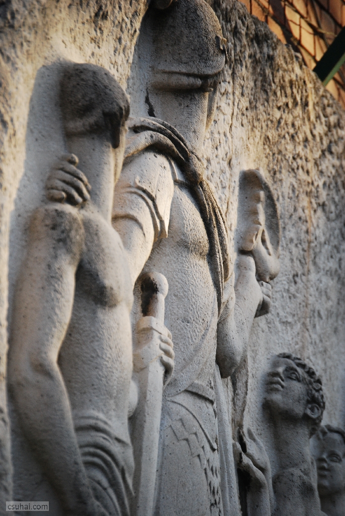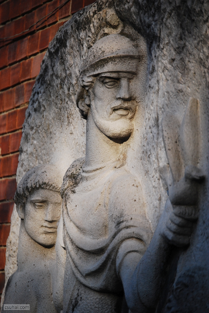 De a címben feltett kérdés másik fele még hátravan, és őszintén bevallom, az egész poszt annak köszönheti létét, hogy az itt következő képeket egészen mást keresve véletlenül megtaláltam az egyik könyvtáramban. 2017 februárja volt, nekem új, még begyakorolatlan gépemmel egy szombaton kimentem a télvégi, szürkés, váratlanul fel-felderengő időbe, a talajt Óbudán, a Filatori gát környékén az előző napokban lehullott hó esőverte, éjszaka visszafagyott maradványai borították, mindegyik földön álló szobor leírhatatlanul borzalmasan, szürkén és élettelenül hatott az elkészült képeken. A falra felhelyezett domborművek nem, azoknak kifejezetten jót tett a kemény rajzfilmszerűség.