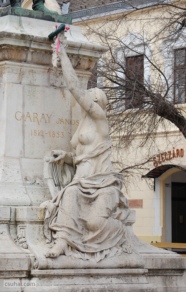 ilyen elcsúszásával már-már komikusan hat. Érdemes tudni, és ez magyarázhatja a furcsa aránybeli eltérést, hogy a Garay-emlékmű két alakja két szobrász munkája,