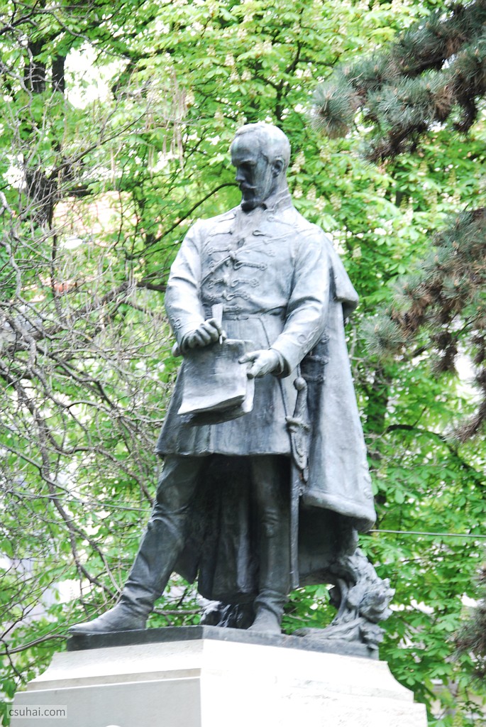 A szobor, melyet még 2009 tavaszán, a szoborlapos tagságomat megelőző hónapokban voltaképpen véletlenül fényképeztem (közel volt a néhány napig szállásomul szolgáló bukaresti Magyar Intézet akkori épületéhez), még egy dolog miatt unikális: ez az egyetlen közterületen lévő nagyobb méretű szobor Bukarestben, amely magyar szobrász alkotása, mégpedig a legnépszerűbb budapesti szobra, a városligeti Ifjúság kútja című női akt révén szélesebb körben ismert, 1879-ben Marosvásárhelyen született és 1948-ban Budapesten elhunyt, a Százados úti művésztelep létrehozásában Margó Edéhez hasonlóan aktívan közremúködő Horváth Géza munkája. A fiatal szobrász a román király felkérésének tett eleget, amikor 1908 júniusára elkészítette a kétalakos, az akkor egy éve halott minisztert híven ábrázoló kompozíciót, a szobor pedig csodák csodájára túlélte a rákövetkező, fordulatokkal teli bő száz esztendőt, és rendületlenül a helyén maradt.
