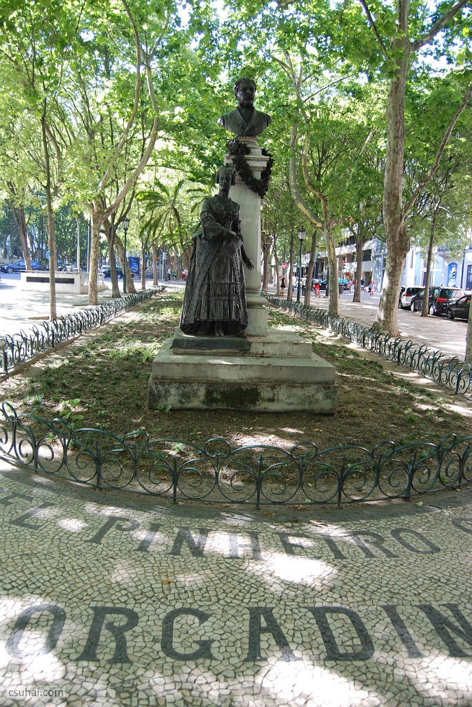 António Augusto Costa Motta (1862–1930), a portugál szobrászat egyik nagyágyúja mintázta meg Manuel Pinheiro Chagas (1842 –1895) mellszobrát és a mellszobor előtt álló női alakot, és öt évvel Eça de Queiroz szobra után, 1908-ban állították fel őket a lisszaboni Avenida de Liberdade parkos oldaljáratán (a szoborról az információkat ebből a bejegyzésből szereztem).