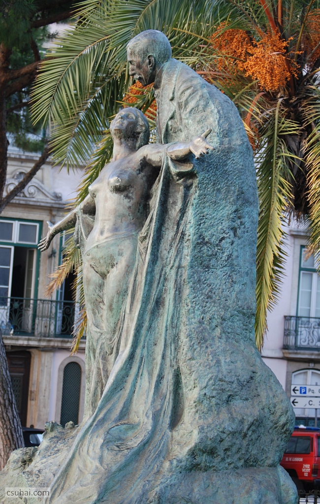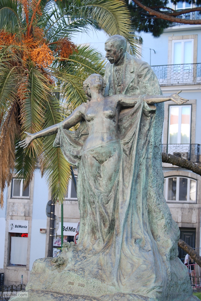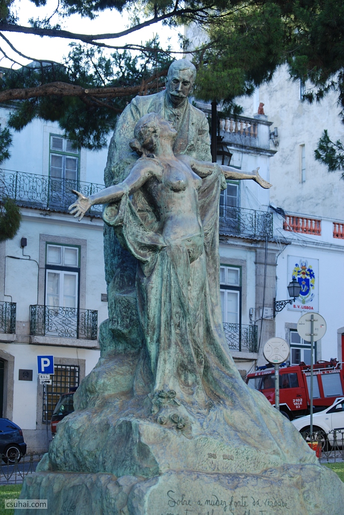 De előreszaladtunk az időben (a Gárdonyi-szobor egyszerű későromantikájával 1932-ben állt fel), muszáj visszaugornunk 1903-ba, első látásra a portugál szecesszióhoz, ahhoz a szoborhoz, ami végül most ezt a posztot kiváltotta. Ezt ugyanis idén júniusban fényképeztem Lisszabonban,