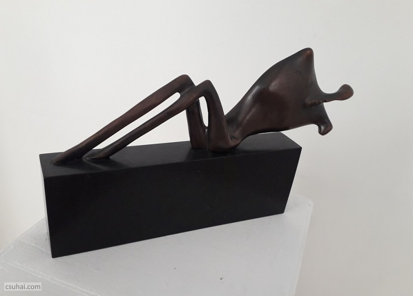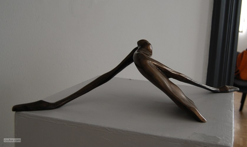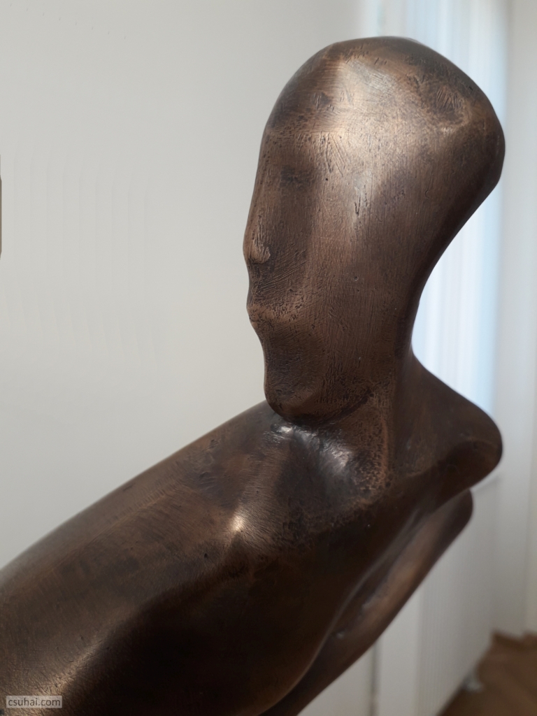 Apropó, címek. A tárlat anyagában jó néhány kis szobor volt, amelyek a Cím nélkül címet viselték, utána sorban római számokat, de amikor volt tényleges címük, attól valahogy a szobor is beszédesebbé vált. Az itt látható, bal térdét felhúzó, félig ülő, félig támaszkodó figura