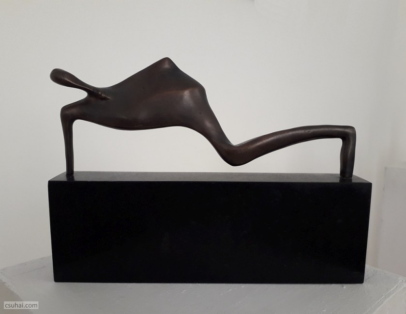 Ott van ugyanakkor ez a kisplasztika, a Fürdő nő 2., a talapzat nyújtotta lehetőségeket kompozíciójában a végletekig kiaknázó darab,