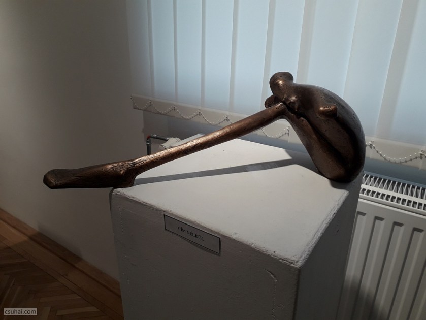És hát ott van persze a kiállítás műlistájában II. világháborús emlékműnek aposztrofált kisplasztika, vakus
