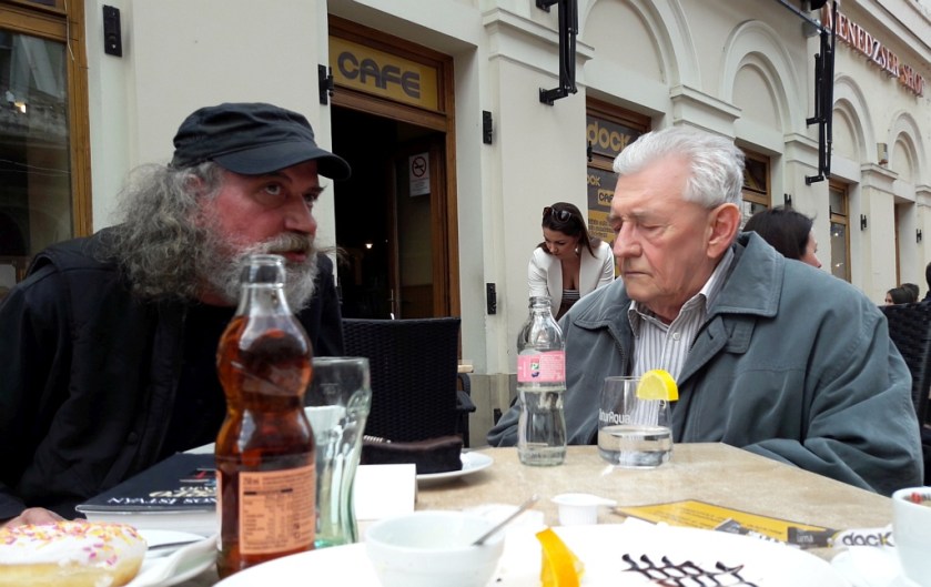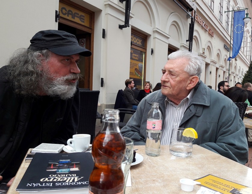 A lentebb olvasható szöveget huszonöt évvel ezelőtt írtam, Ilia Mihály hatvanadik születésnapjára, Füzi László felkérésére, és a Forrás 1994. szeptemberi számában jelent meg. De nem akarom megúszni ezt a jeles napot pusztán ezzel az egyszerű reprízzel, bár az írás minden nekem fontos mozzanatot tartalmaz egykori tanáromról, talán mondhatom úgy, barátomról, majdnem negyven irodalmi évem során legfőbb, legfigyelmesebb segítőmről, az akkor hatvan éves Ilia Mihályról. És szép is ez így, hiszen hiába hussant el huszonöt év, az én életemben az ő legfontosabb tulajdonsága nekem az állandósága, a rendületlen jelenléte. 2018 húsvétján kilenc év szünet után jutottam el a családommal pár napra Szegedre; már a városból hívtam fel szerdán, hogy szeretnék vele találkozni, tudna-e időt szakítani rám abban a néhány napban. Tudott, péntek délután találkoztunk, a Dugonics tér szélére, a villamosmegállóba beszéltük meg a randevút. Háttal állt nekem, összerezzent, amikor megérintettem a vállát és felém fordult (soha azelőtt nem láthatott szakállasan, sem baseball-sapkában). Besétáltunk a Kárász utcára, valahol a közepe táján leültünk az egyik kávéház teraszára, a poszt kíséretében látható két kép ekkor készült. A huszonöt évvel ezelőtti írásom egyik kitételét igazolandó, ekkor is megajándékozott engem, most Domonkos István Allegro bajbajó című kötetével, a könyv borítója az egyik képen jól kivehető. Minden úgy folyt, mintha előző nap maradt volna abba, kérdezett, válaszolt, továbbfűzte, meghallgatott, újra kérdezett, úgy érezhettem, az együtt töltött bő másfél óránk alatt a világon neki legfontosabb ember vagyok (a kávéház teraszáról továbbsétáltunk, a Stefániától már csak kettesben sétáltunk el Tar István szobráig, ott elbúcsúztunk egymástól, de ha van ennek értelme, a szobrot a vele való találkozás szellemében fényképeztem végig, és írtam meg hozzá pár héttel később a kísérőszöveget). És tényleg így van: mindig olyan gesztusokat gyakorolt felém, olyan dolgokban nyújtott elsőre gyakran nem teljesen átlátható segítséget, amikkel lényegesen befolyásolta az életemet. Rengeteg olyan dolgot tanított meg, nem feltétlenül közvetlen vagy akadémiai formájú tanítással, hanem a mintájával, a viselkedésével, a habitusával, amelyeknek felnőtt életemben bármikor hasznát vehettem. Hasznát vehettem, hogy ő olyan volt, feltételek nélkül olyan volt — megismerkedésünkkor, negyvennyolc évesen, a rákövetkező egy-két évben, ötvenegynéhány évesen, amikor az egyetemen tanszéki demonstrátorként a mindennapos közelében voltam, hatvan évesen, amikor az itt olvasható szöveget írtam, vagy most, a nyolcvanötödik születésnapján — , amilyen. Az isten éltesse Ilia Mihályt!