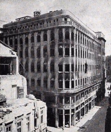 De jött a világháborús front, és az utcai harcok során az épület súlyos károkat szenvedett, statikailag nem sérült meg ugyan, de két homlokzatát is belövés érte és a belseje teljesen kiégett.
