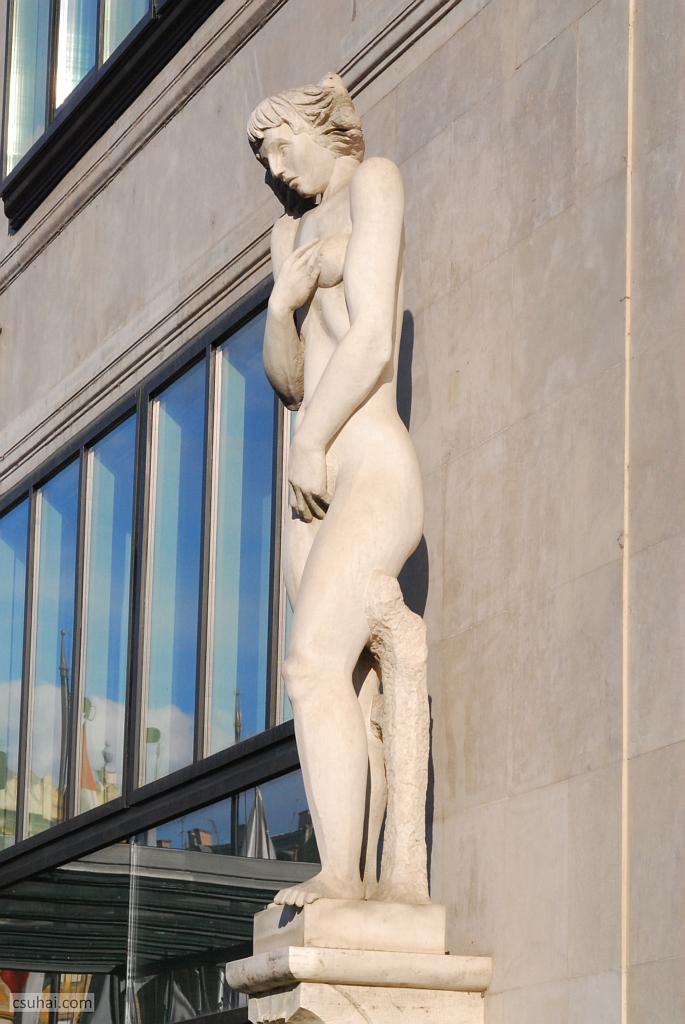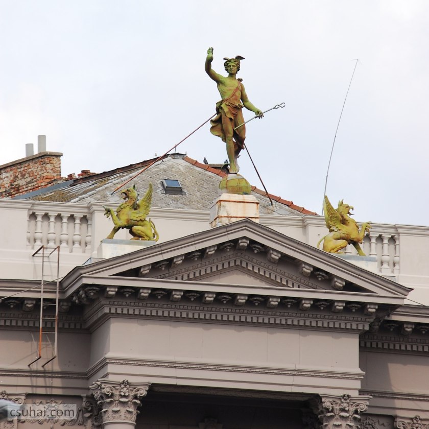csúcsán is ott áll a mitológiai hős, és azért ilyen szabadon, mert a városképi jellegű saroképület a háború után