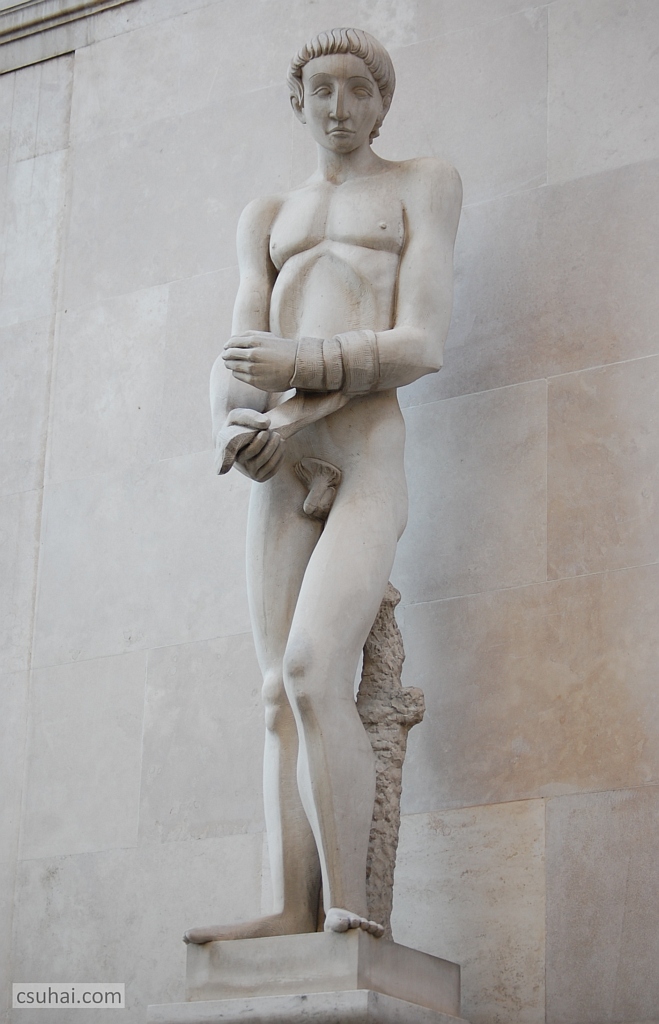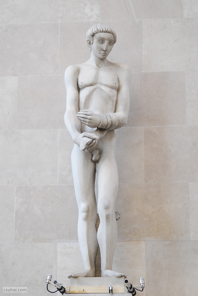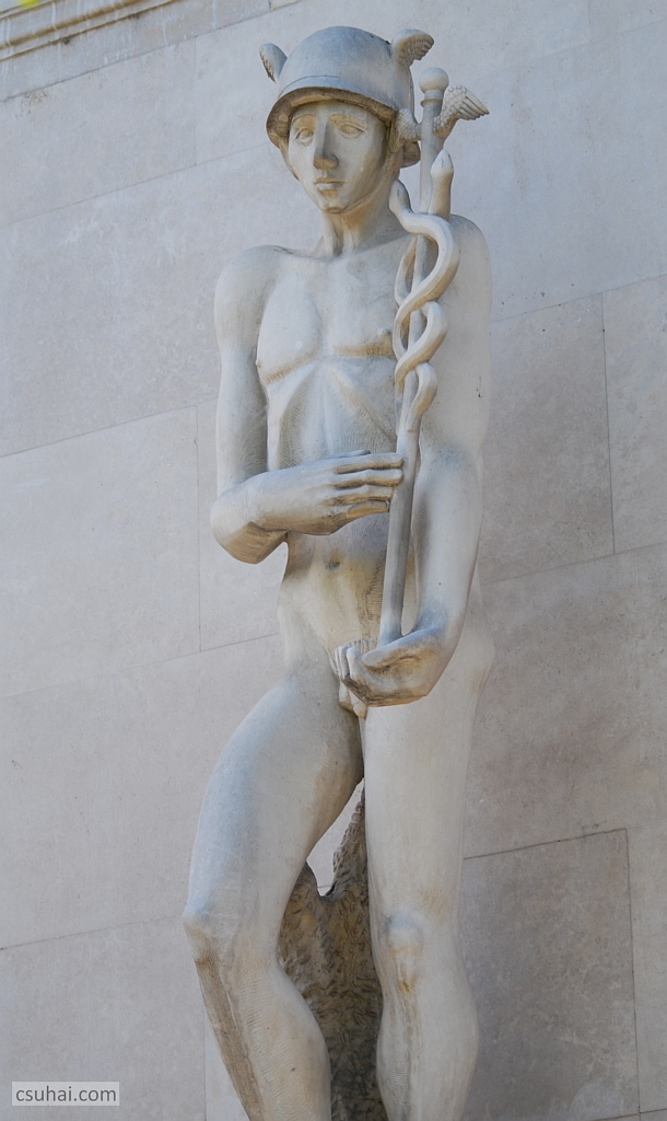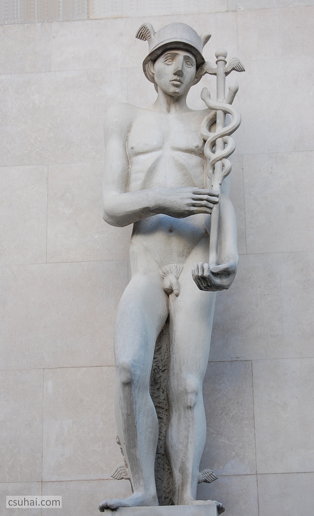 a kidolgozott izomzatú, ruhátlan Hermész/Merkúr,