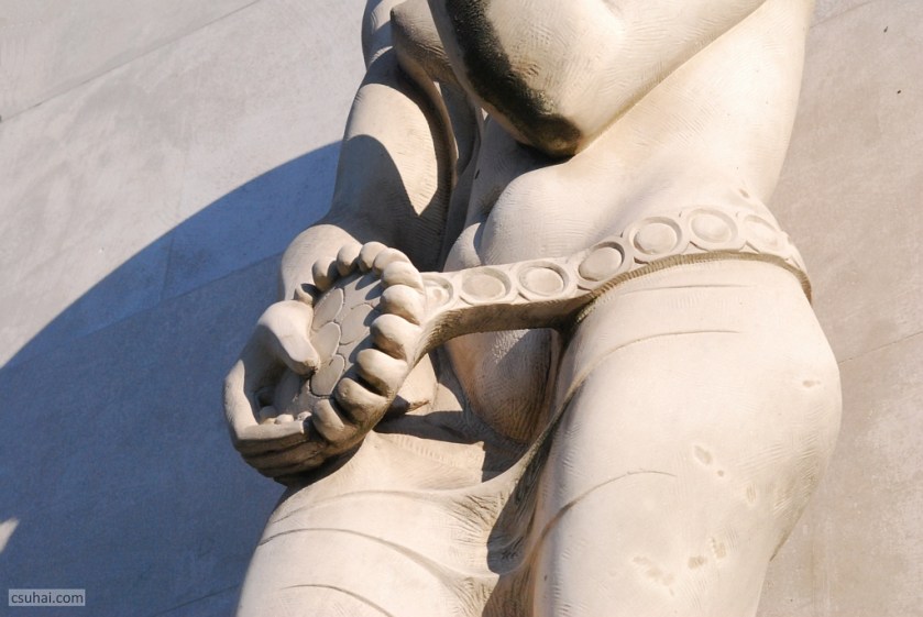 amolyan budapesti Dávid is lehetne. De a szállítmánybiztosítás jelképe ő, azon kívül, hogy figurája általában is a pénzügyi, banki, biztosítási (“merkuriális”) ügyletek allegóriája, nem véletlen, hogy az Erzsébet tér túlsó sarkának szélén,