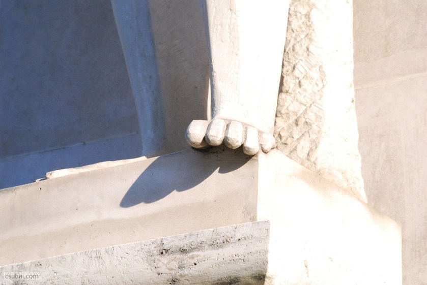 aki nemcsak az épület optikailag legbejártabb keleti-északi sarkára került, és akit nemcsak a blog figyelmes olvasói ismerhetnek két távoli képről a Vigh Tamással foglalkozó poszt Sztehlo Gábor-emlékművét bemutató sorozatából,