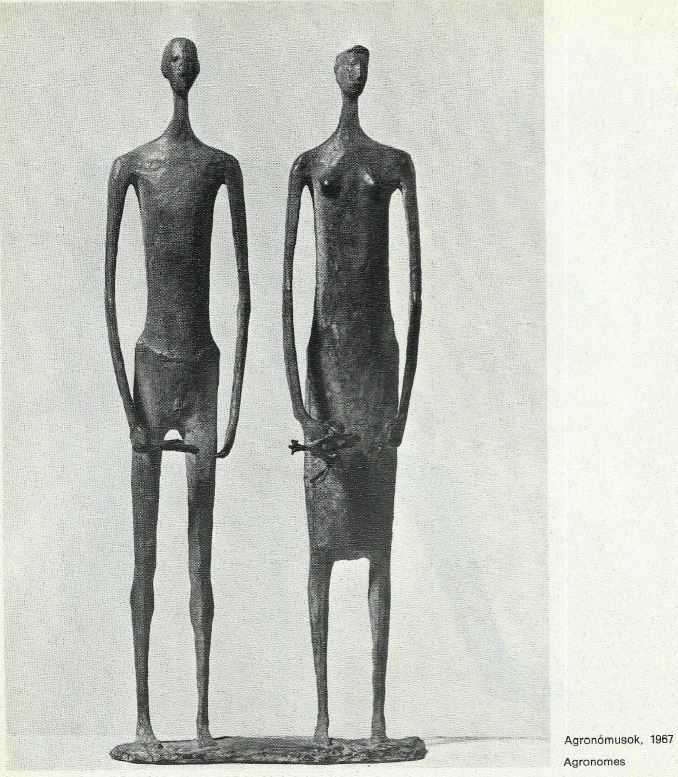 Apa és fia című rákoskeresztúri szobrára, melynek a Janus Pannonius Múzeumban őrzött kisplasztikai változata 1964-es,