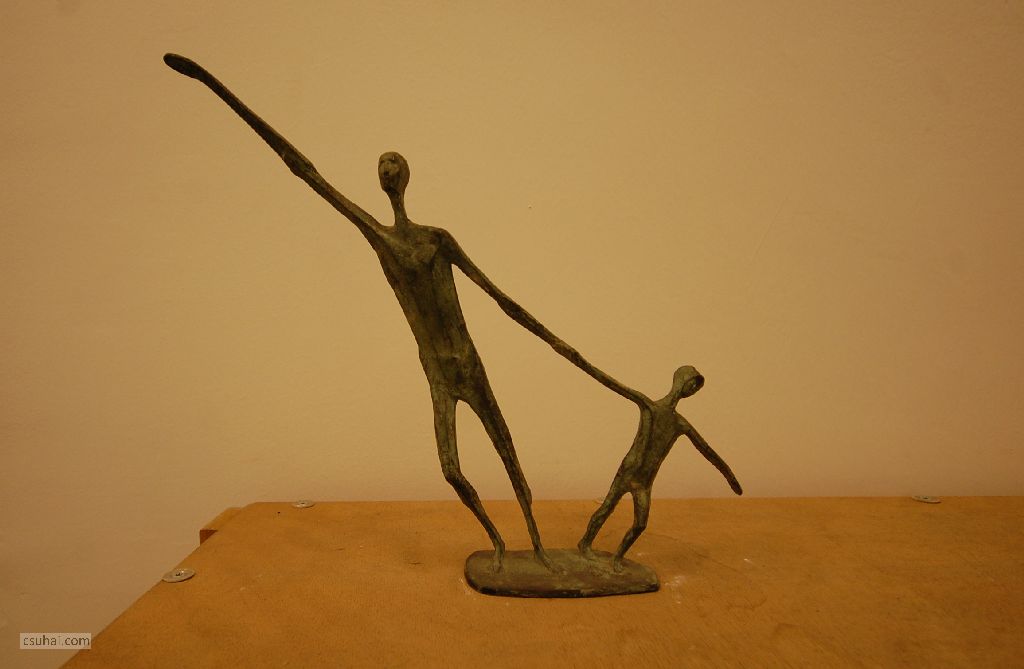 Apa és fia című rákoskeresztúri szobrára, melynek a Janus Pannonius Múzeumban őrzött kisplasztikai változata 1964-es,
