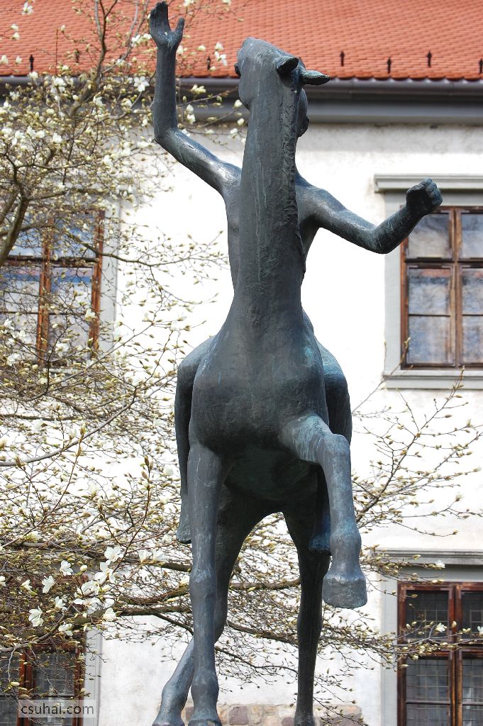 az egyik legjobb magyarországi lovasszobor, Andrássy Kurta János a sárospataki vár előtt álló Lovasának geometriai abszurdját