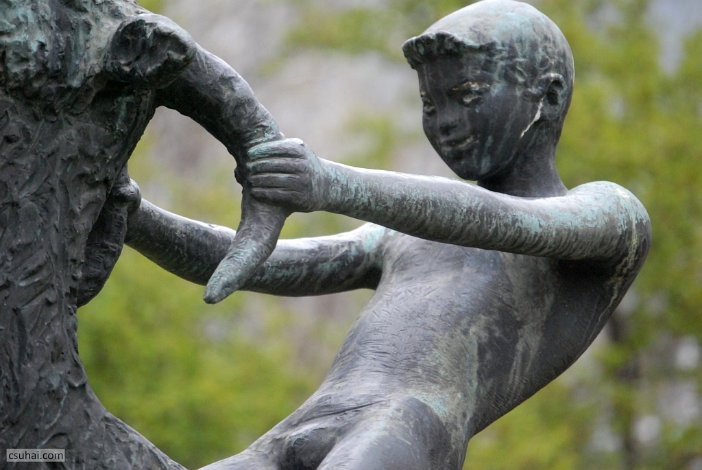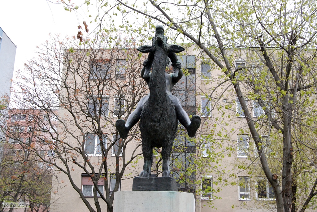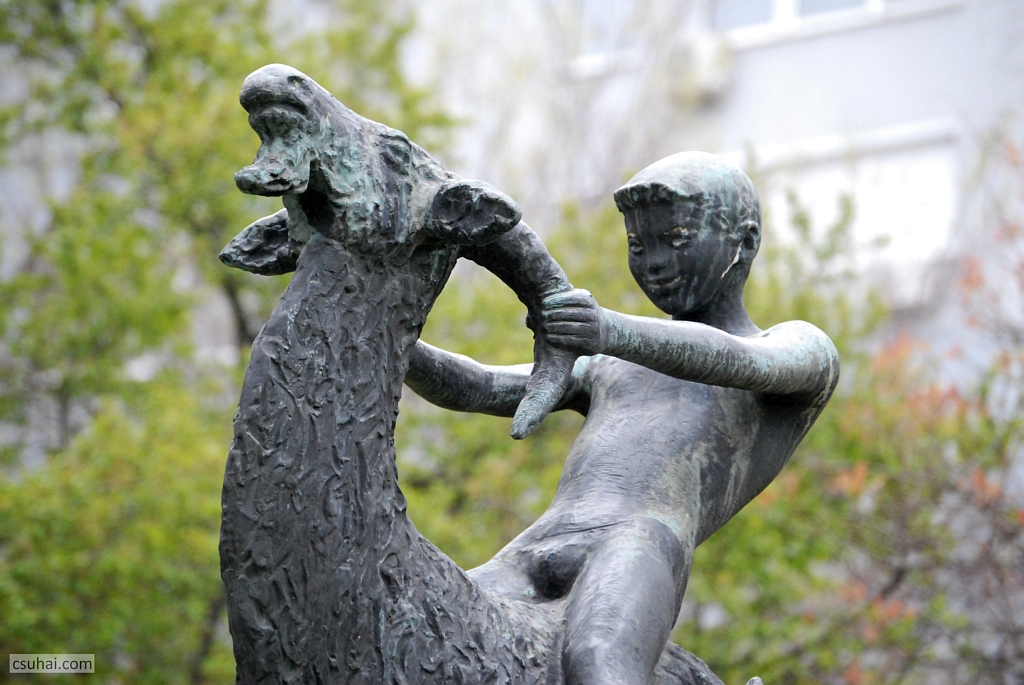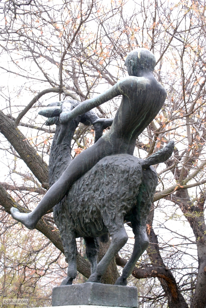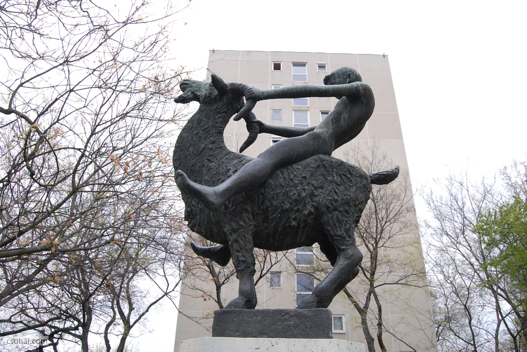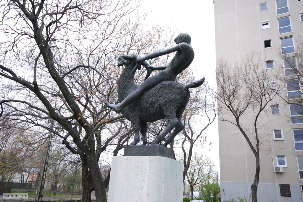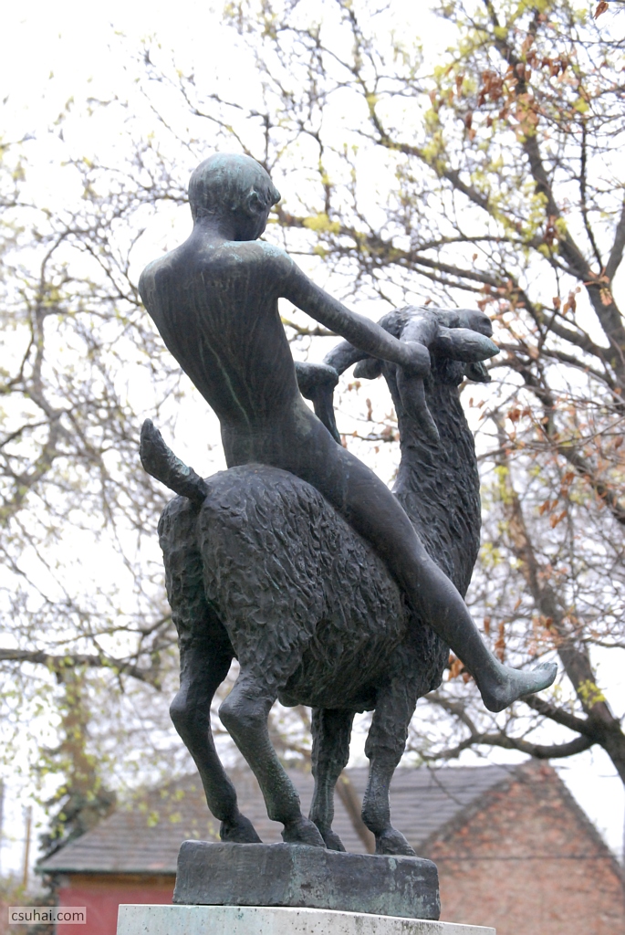 Nem tudom persze, tényleg igazam van-e ebben, Szabó Iván 1971-ben a csepeli belváros és az ófalusi lakótelep találkozásánál felállított Kecskén ülő fiú című szobrát mindenesetre egy napsütés nélküli, szürkés, áprilisi késő délelőttön fényképeztem körbe — ha akarnám, se tudnék élénk, napfényes képeket mutatni róla.