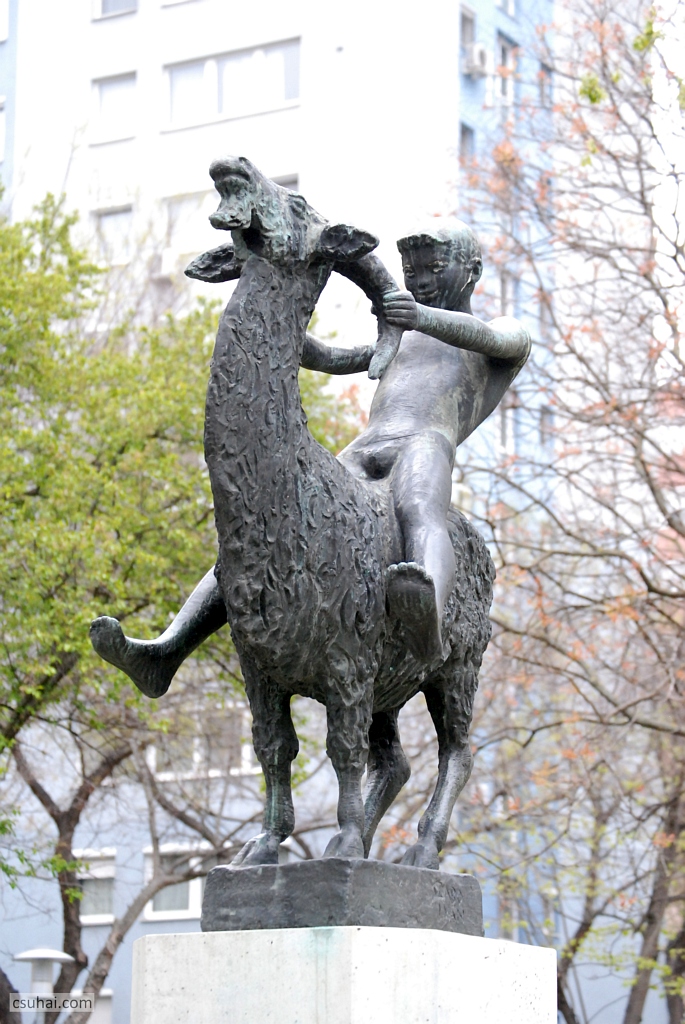 Azonnal hozzáteszem, a Kecskén ülő fiú kiemelkedően jó elhelyezésű szobor, a szélesebb kivágotokon jól látszik saját, külön kiképzett proxemikai környezete,