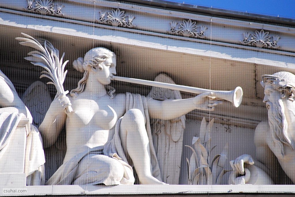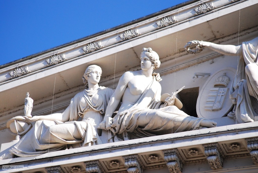 a belváros felé eső oldalon a “Nevelés és nemzeti haladás” allegóriája