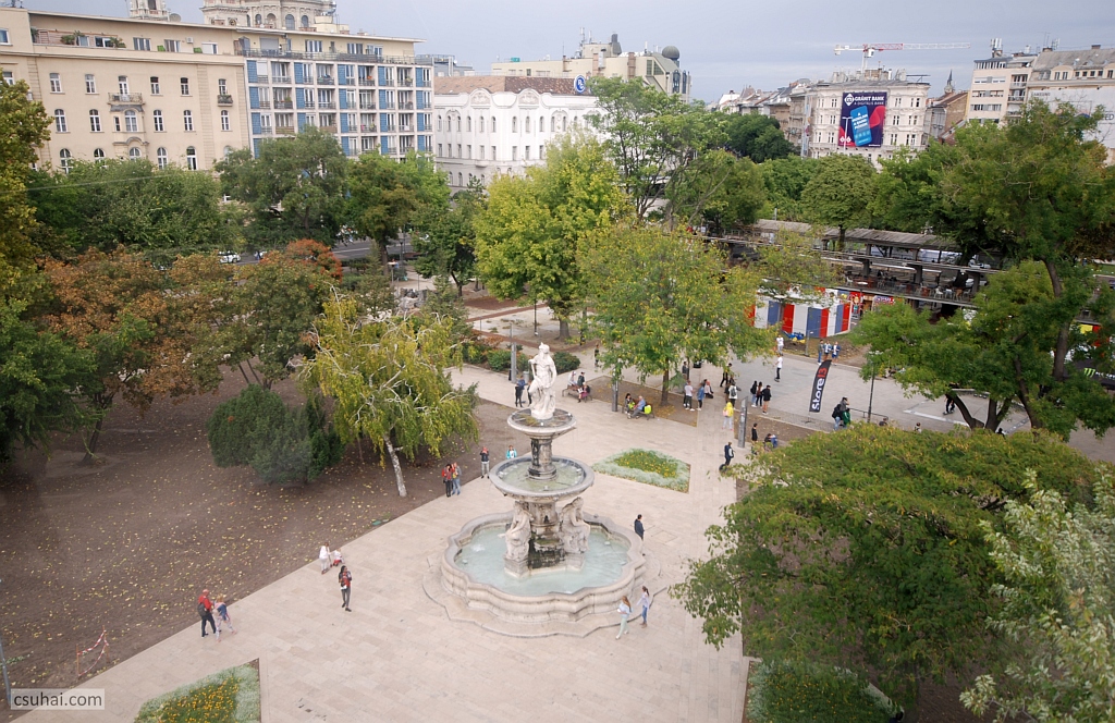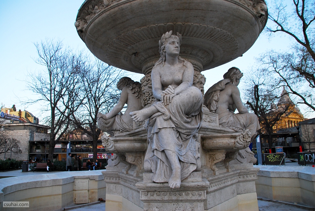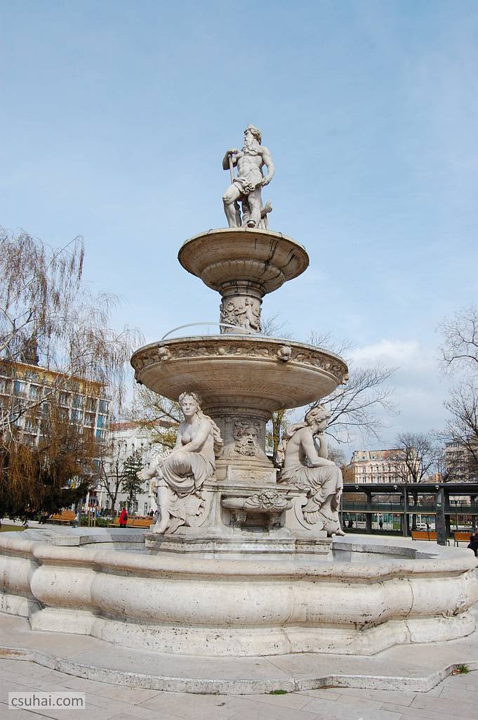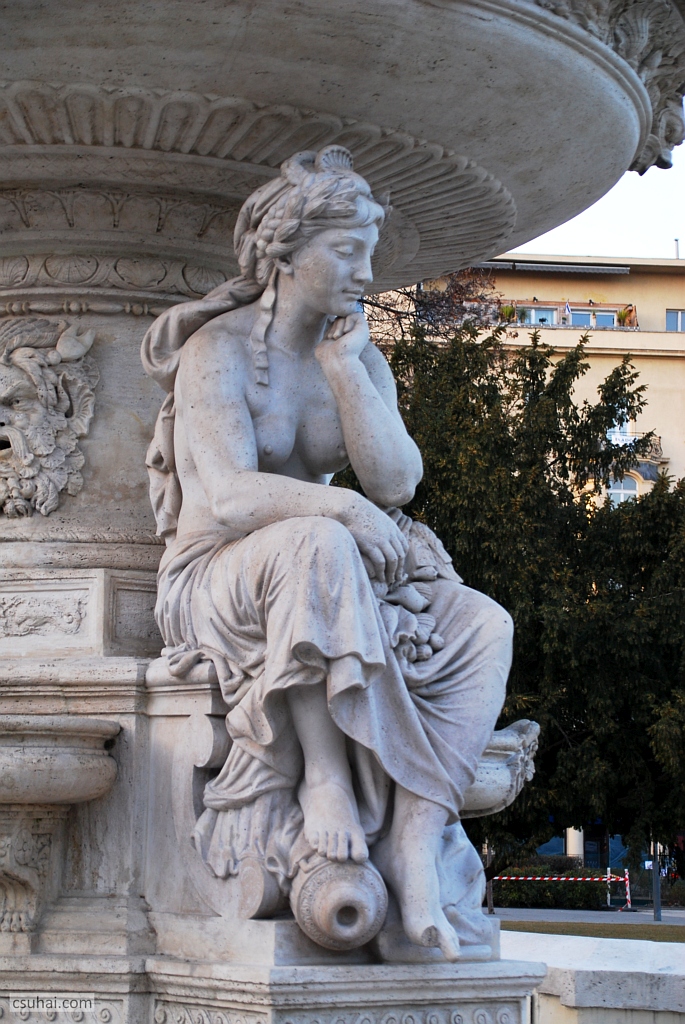 az Ybl Miklós tervei alapján és Leo Fessler, vagy ha úgy jobban tetszik, Feszler Leó szobraival (elég sokat élt és ténykedett Magyarországon, hogy magyar névváltozata akár még Verne Gyuláénál is indokoltabb legyen) az 1883-ban eredetileg a Kálvin téren felállított Danubius-kút,