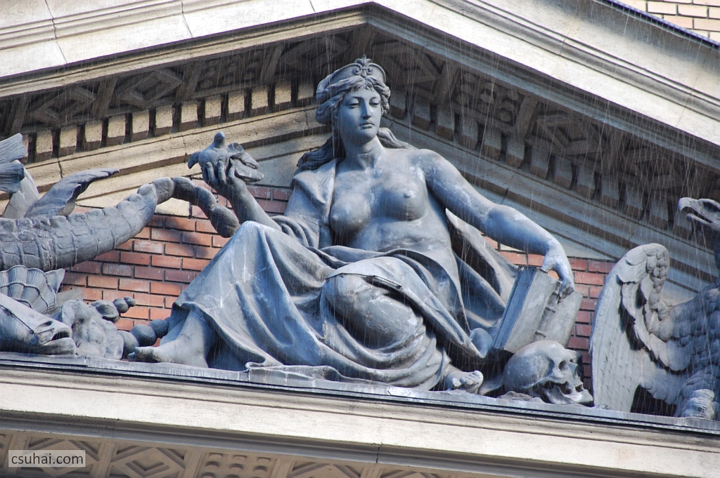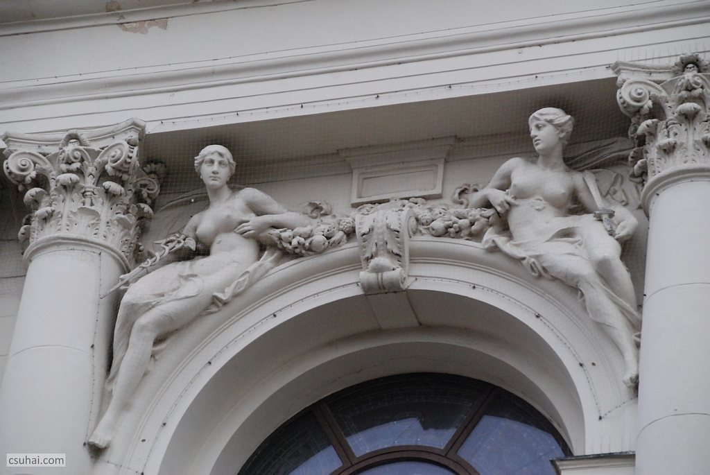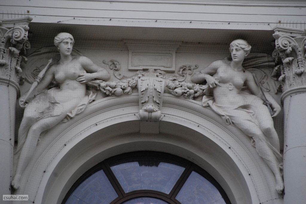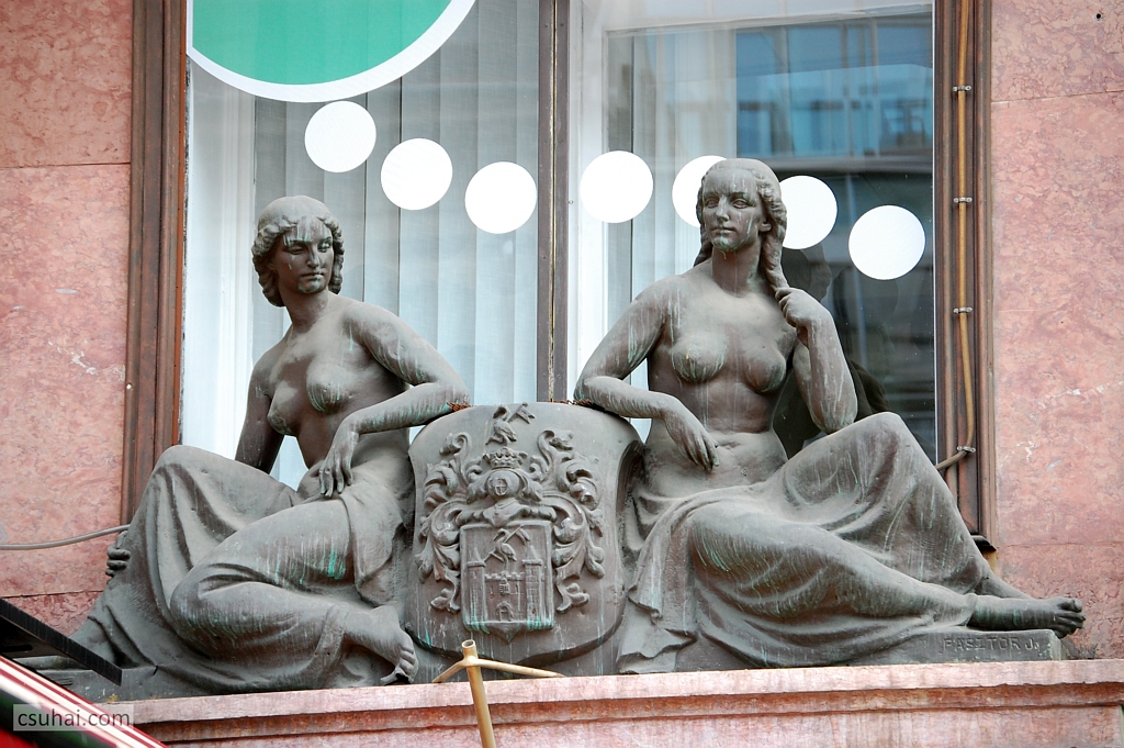 Tóth István: A Magyar Nemzeti Bank allegorikus nőalakjai — Bőség, Hajózás (Budapest, Szabadság tér, 1905)