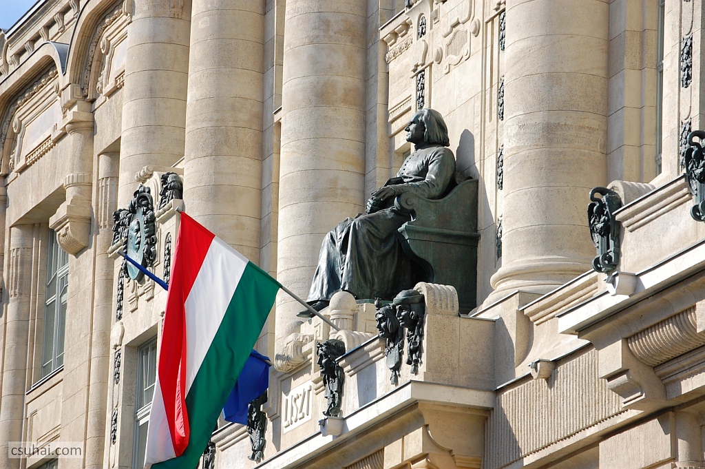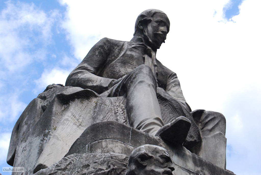Széchenyi István-szoborral, Engel József munkájával, ahol a főalak, Széchenyi áll,