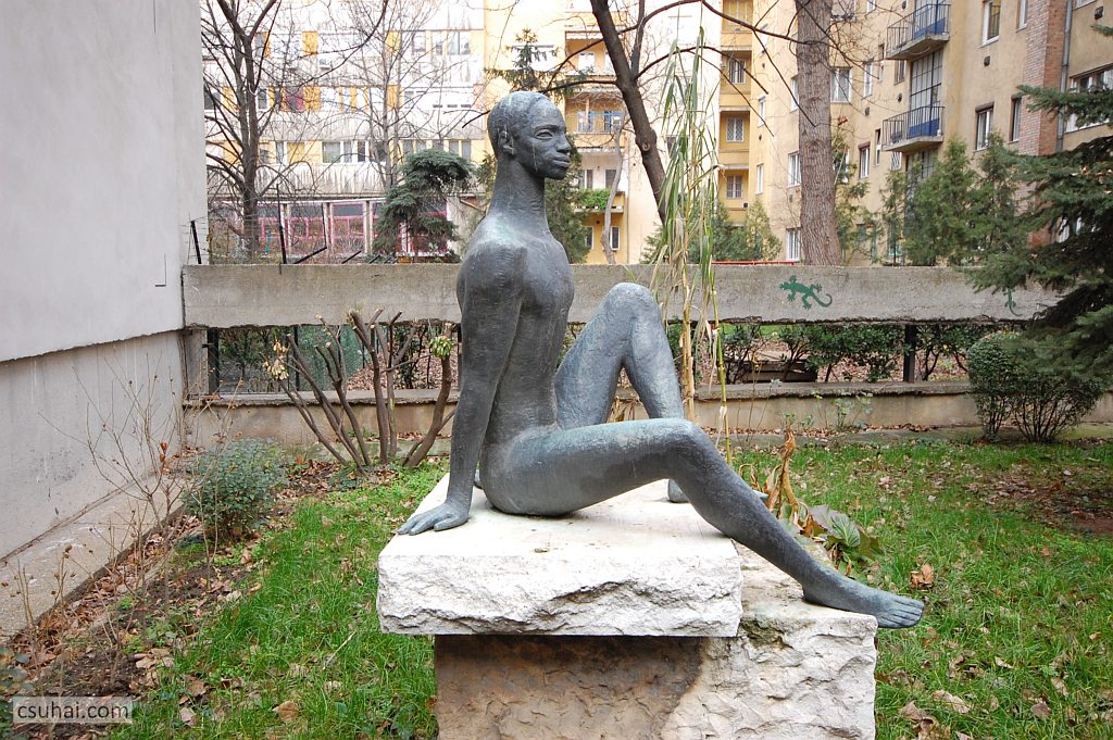 Kiss Kovács Gyula: Ülő leány (Budapest, Kerepesi úti lakótelep, 1958)