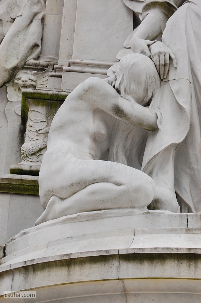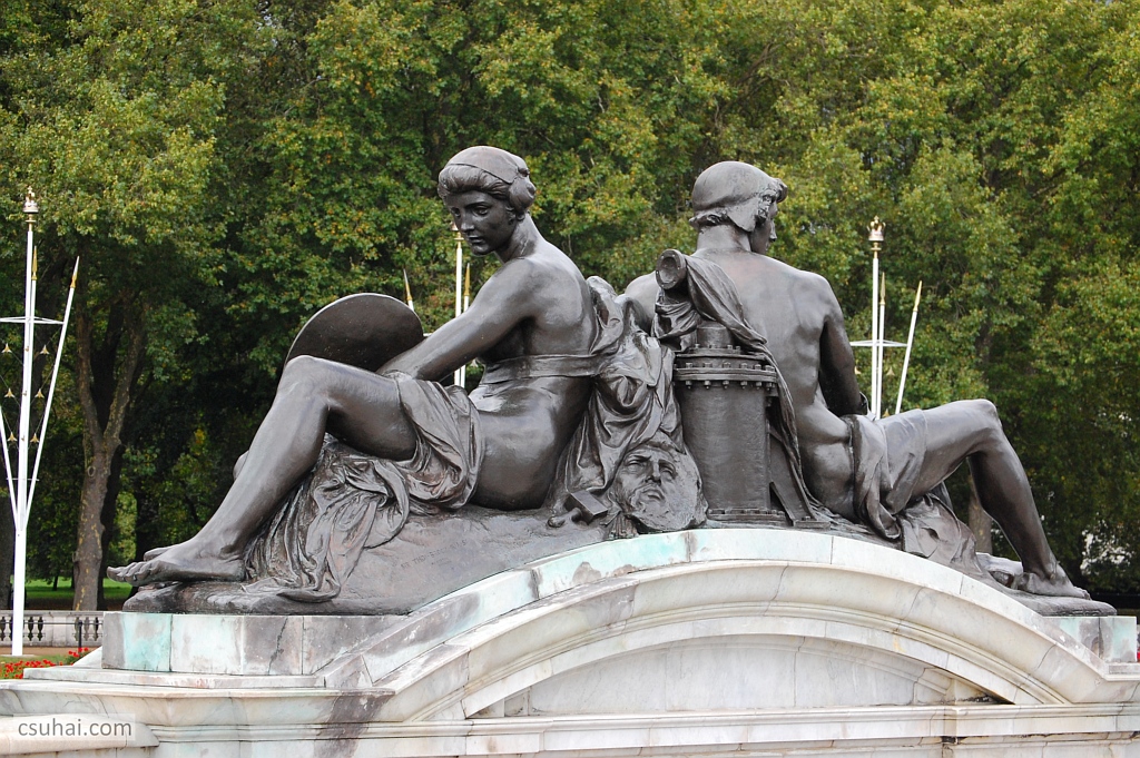 és nem is ez az angol bronzból (fényes, sötét, tömör anyagból) öntött, az emlékműhöz később hozzáadott, a Viktória-korabeli Brit Birodalom vízzel és tengerészettel kapcsolatos erényeit hangsúlyozó szimmetrikus páros,