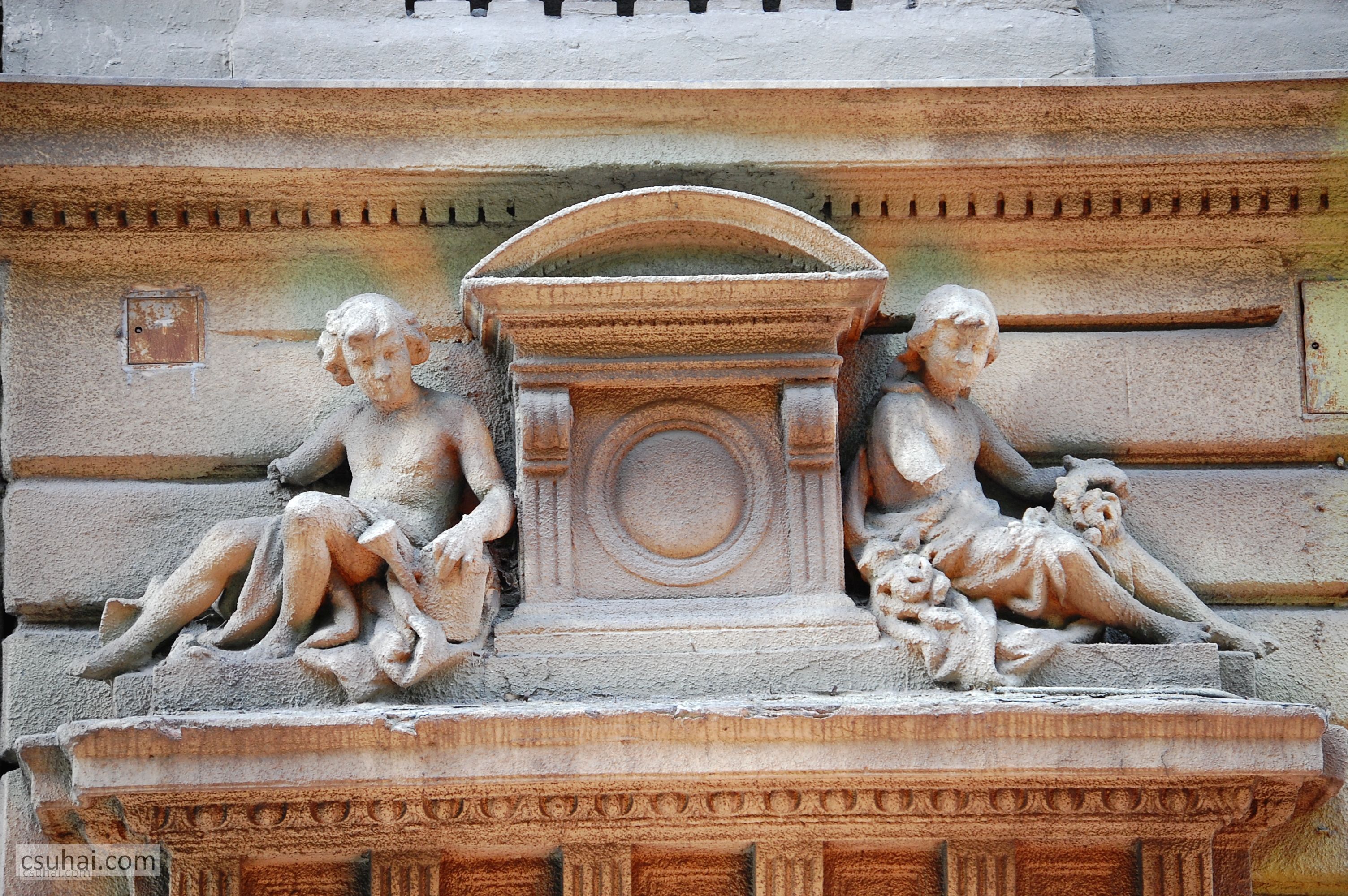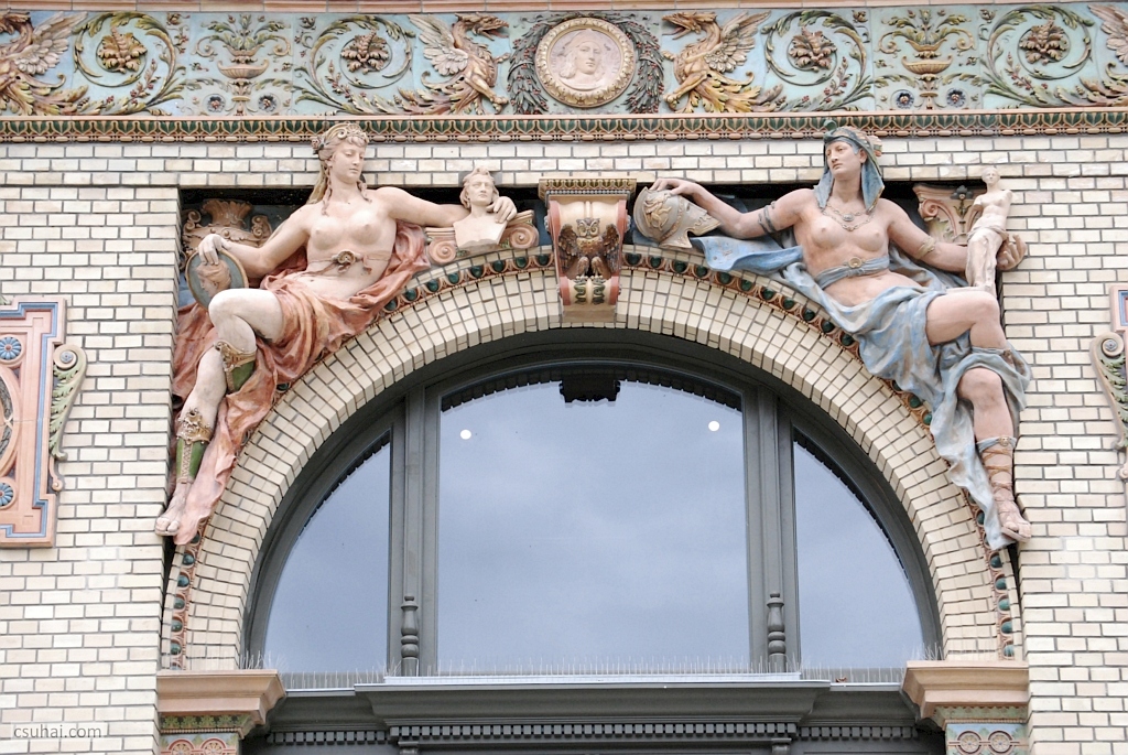 Az itt következő hét páros épületdísz alkotója azonosítatlan.