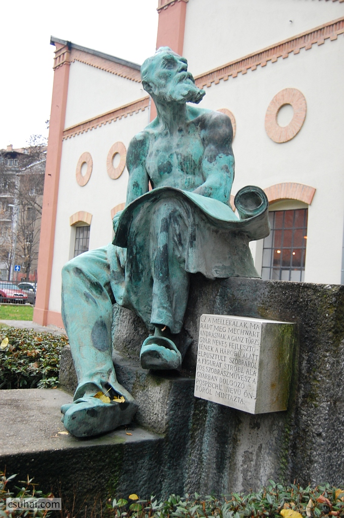 ha meg egy izmos ifjúval, az Ipar allegóriájával (akinek modellje Réthy Menotti atléta volt), a Keleti pályaudvar elé,