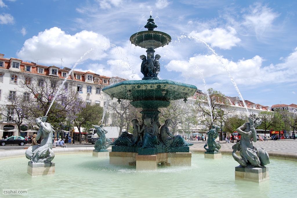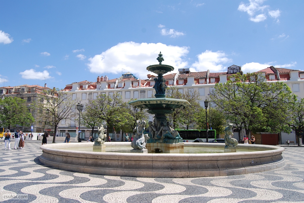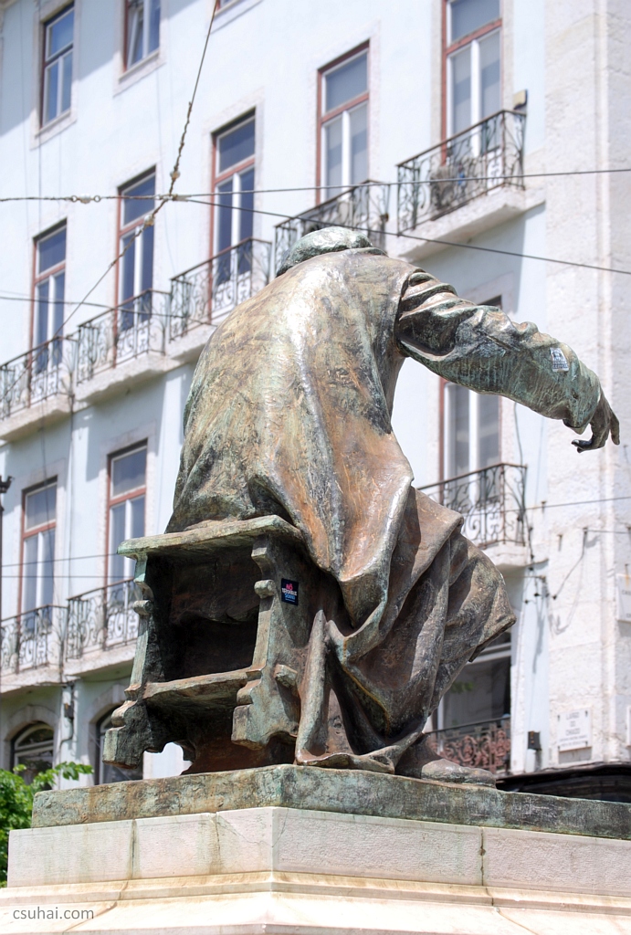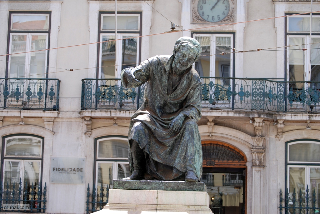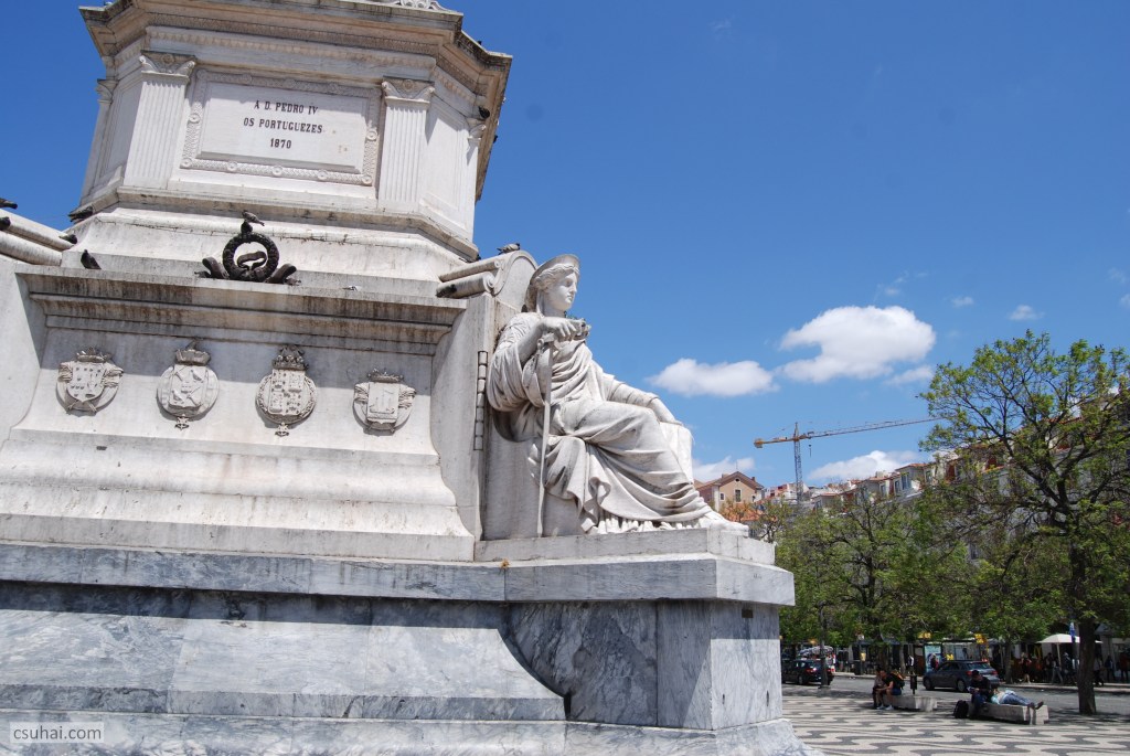 (maga a főalak, a 23 méter magas korinthoszi rendű oszlopon álló IV. Péter portugál király, e minőségében csak néhány hónapig ült a trónon, igaz uralkodása alatt elfogadtak egy alkotmányt, Brazíliának I. Péter néven viszont hosszasan volt az első császára, a dimbes-dombos Lisszabon valamelyik lépcsőjén leereszkedve látható a legjobb perspektívában)