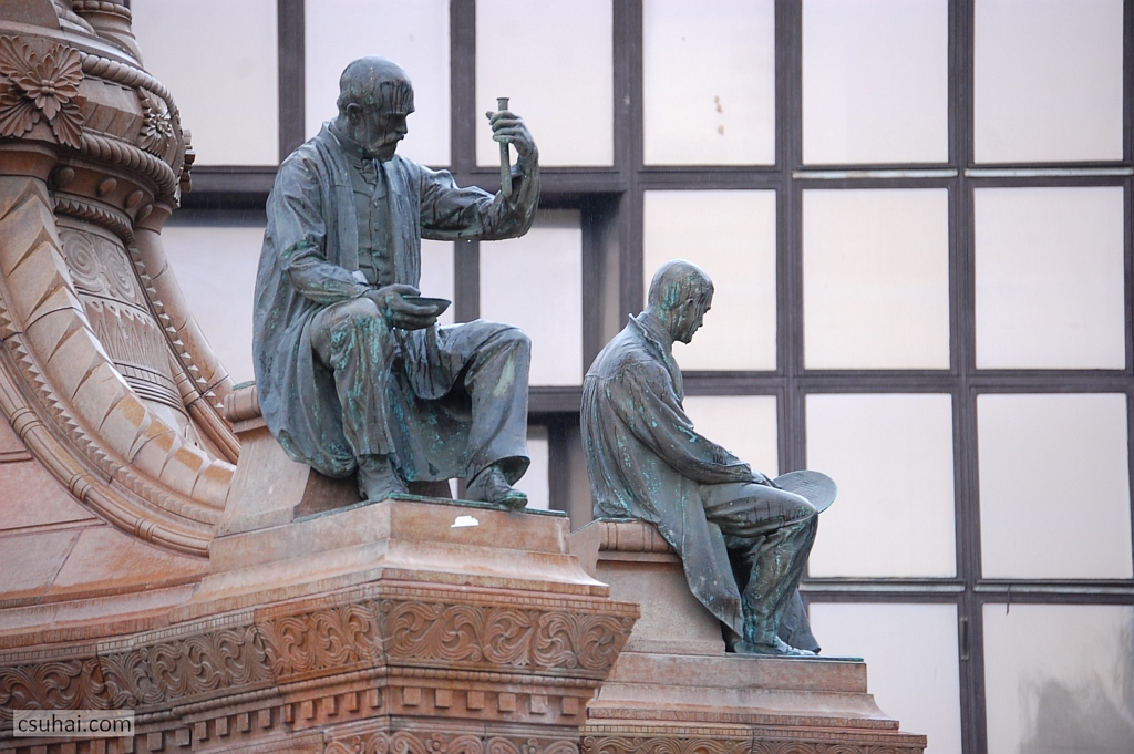 Mint például az Adam Mickiewicz-emlékműnél Krakkóban, ahol, ellentétben a megközelíthetetlenül magasan álló főalakkal,