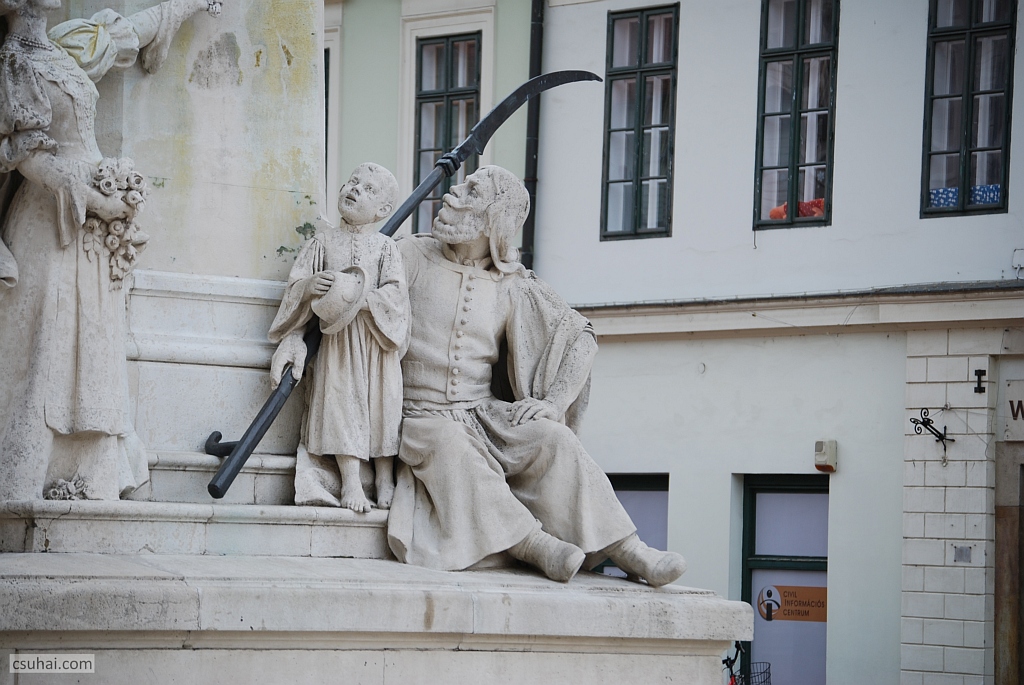 hogy emlékműben vagy díszítőszoborban az álló főalak–ülő kísérőalakok kombóját megtaláljuk,