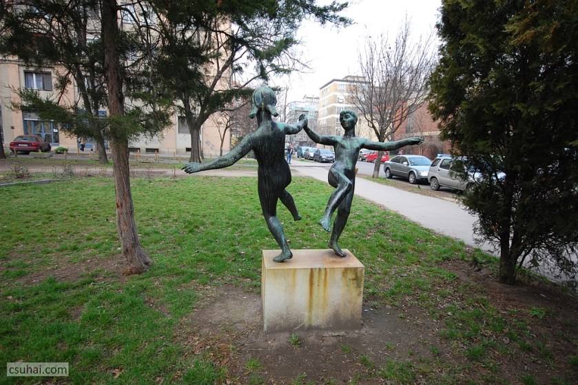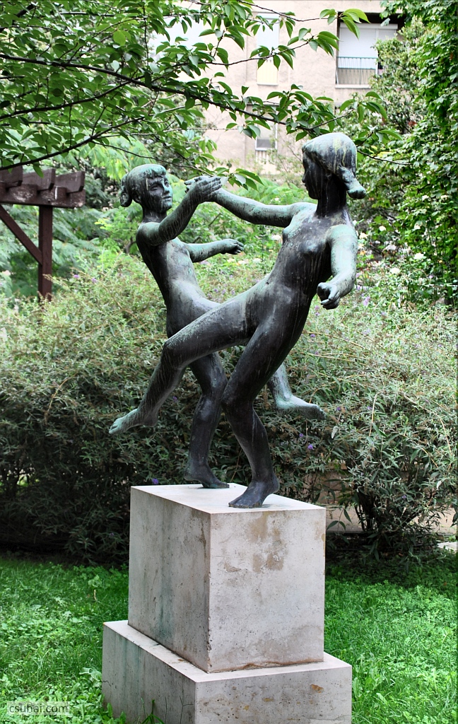Ezek közül kettő egyelőre még titok, nem jött el az idejük, majd talán 2024-ben derül rájuk fény; egy másik közülük az MTA főépülete előtt álló Szarvas Gábor-mellszobor volt, Jankovits Gyula munkája, ezeket a képeket az előző, Alászolgája című bejegyzésben láthatta az olvasó. A harmadik amolyan edzésnek számított, mielőtt az Újbuda TV leforgatta volna a Kovács Ferenc Táncoló lányok című, 1956-ban mintázott, de csak 1963-ban felállított szobráról Dési Jánossal folytatott beszélgetésünket, előtte való nap kimentem Lágymányosra, nehogy valamilyen meglepetés érjen, mert Kovács Ferenc különleges és számomra különösen kedves szobrát akkor már évek óta nem láttam közelről — ezeket az előtte napi képeket szívesen megmutatom most, mert a közeljövőben úgysem fogom őket külön posztban felhasználni.