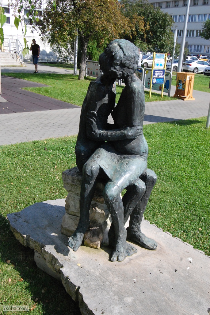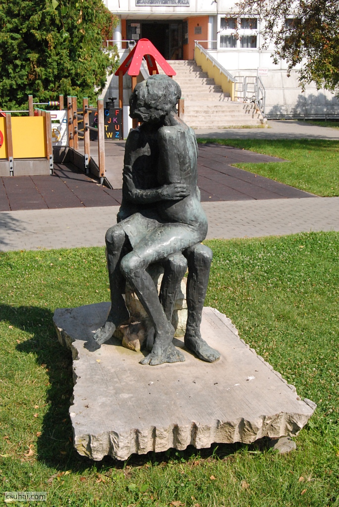 szájuk nem érintkezik, “között” vannak, legegyszerűbb jelentésadással két csók között, átvittebben a szerelmesek örökkön köztes állapotában. A cím igaz tehát, “Szerelmespár”, Rátonyi József nyíregyházi zsánerszobra ily módon nem a magyar szobrászat klasszikus csókszobrai közé illeszkedik,