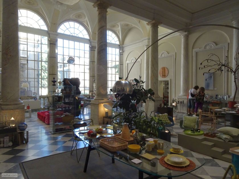 És akár még azt is megengedem, egy rendkívül elegáns, a hely szelleme felmagasztosította olasz VASEDÉNY-be toppantunk, az egész mégis több és meglepőbb volt, mintha egy ilyen jellegű boltba vagy áruházba az utcáról léptünk volna be.