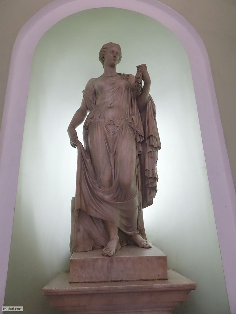 ennek a szobornak, koszorút a bal kezében tartó nőalaknak —