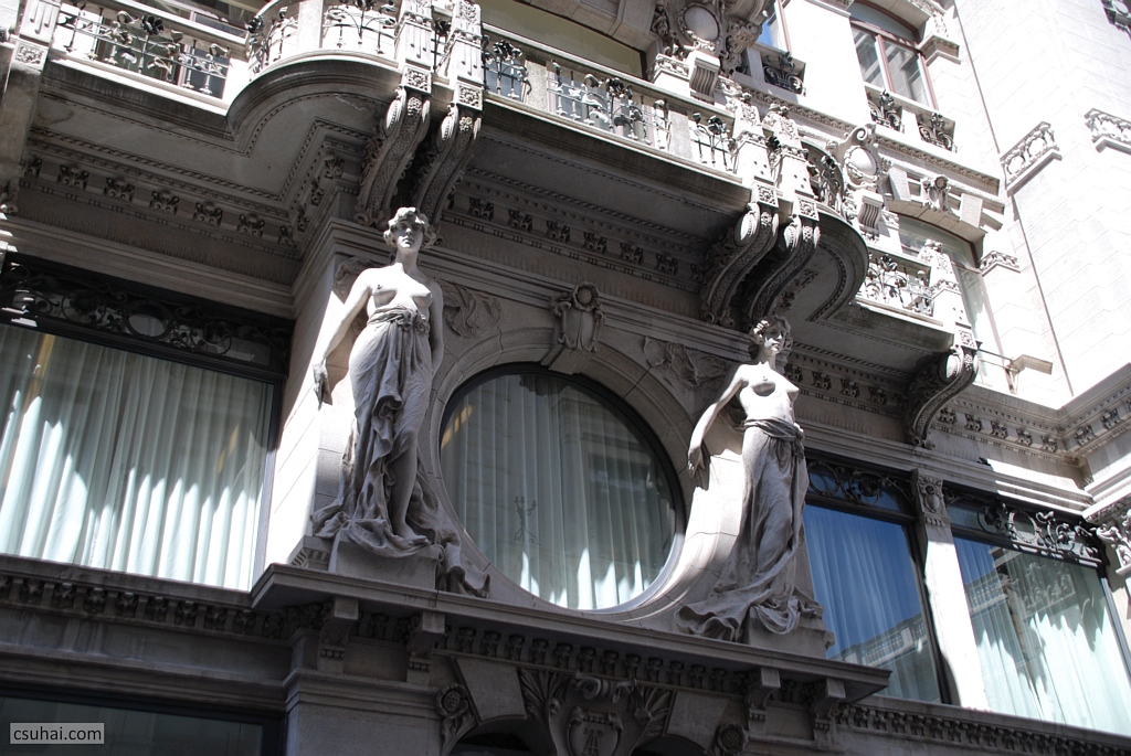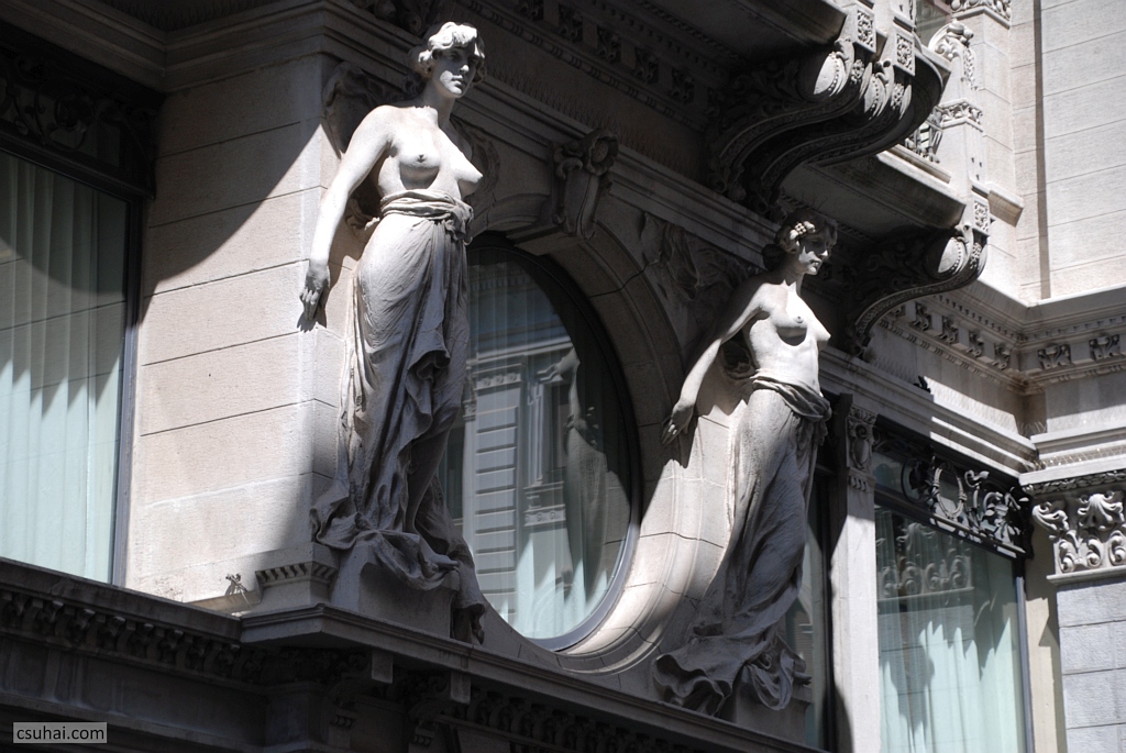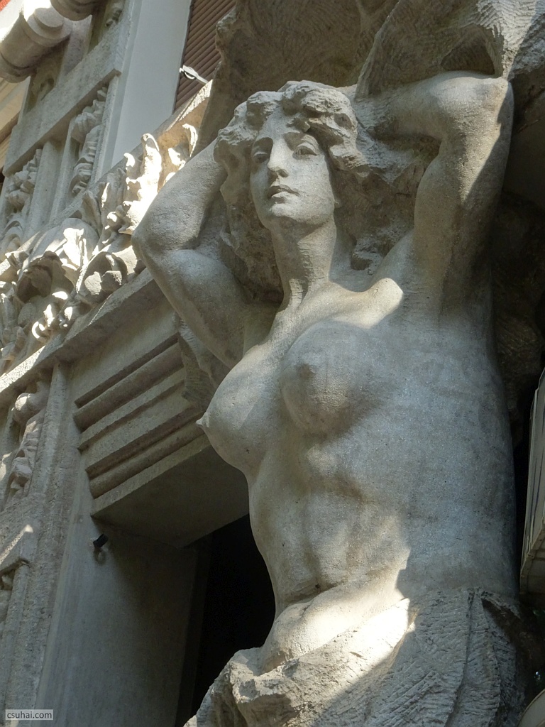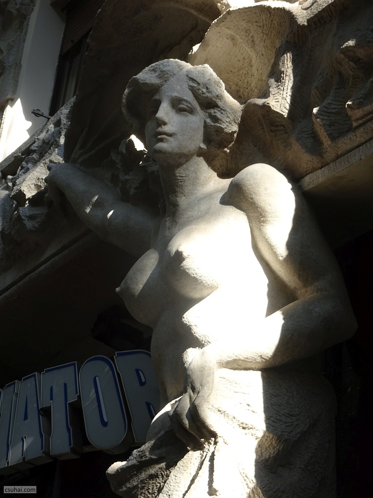 két hatalmas és mégis finom kariatida, bár a fölöttük lévő erkélyt nem érintik