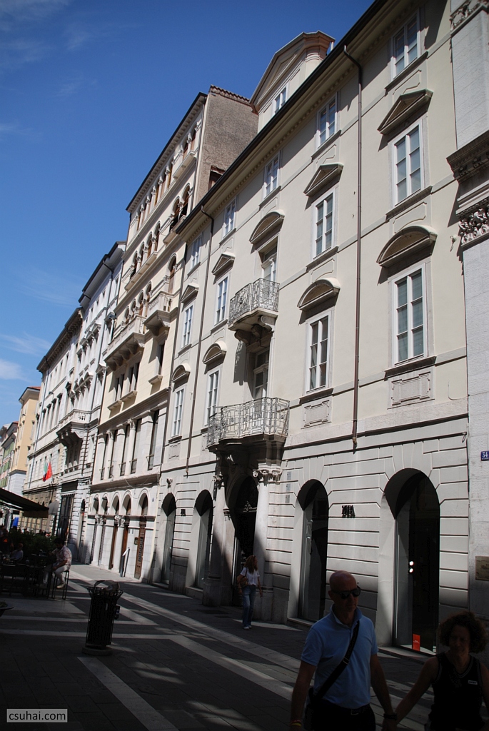 James Joyce trieszti életének második ismert lakcíme továbbá a balra eső házban, a 30-as szám 2. emeletén volt 1905. május 1. és 1906. február 24. között, éppen akkoriban, amikor a Terni-Smolars ház épülőfélben volt.